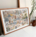 Fugle på marken. En smuk og poetisk illustration på tryk til både stue, pigeværelse eller i sommerhuset.
