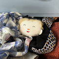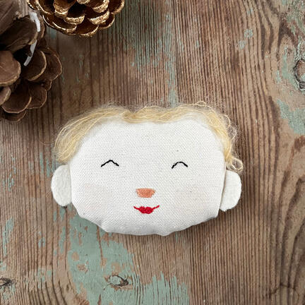Det lille ansigt - duftposen er syet i hånden af bomuldsstof og er let broderet. Bagsiden er en stofrest af, ofte af liberty stof.