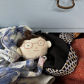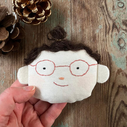 Det lille ansigt - duftposen er syet i hånden af bomuldsstof og er let broderet. Bagsiden er en stofrest af, ofte af liberty stof.