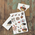 Søde enkle motiver til både de små hilsner og en lidt større. Oplagte at vedlægge værtindegaven.