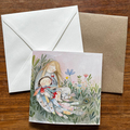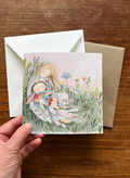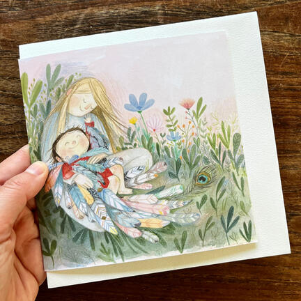 Et sødt og dekorativt kort med illustration fra min tekstløse billedbog FJER. Lige til at sende, vedlægge en gave eller sætte i ramme som et lille billede.