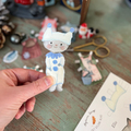 Søde Ellie kat, en ny påklædningsdukke her i shoppen. Ellie har både fisk på fad og en kær Pjerrot dragt samt flere kjoler at skifte imellem.